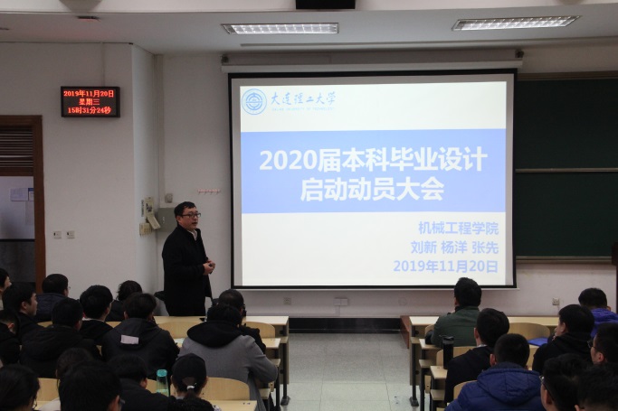 11月20日下午,机械工程学院在综一253召开2020届本科毕业设计启动动员大会。学院院长助理刘新,教务办公室主任杨洋,团委书记、毕业班辅导员王云赫,毕业班辅导员金晗、郭晶以及学院全体2020届毕业生参加会议。