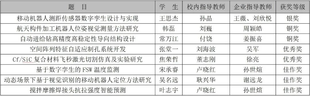 决赛邀请了11家企业的一线技术专家,以及44位高校专家组成评委团,采用公开答辩方式,确保公平公正。我院大四学生王思杰(导师 孙晶)以小组第一身份进入金奖争夺战,并最终获得个人赛银奖(全国仅8人)。我院参赛的其他7项作品也取得佳绩,其中韩磊(导师 刘巍)、常万江(导师 付饶)获得铜奖,张堂一(导师 刘海波)、焦荣哲(导师 董志刚)获得优秀奖,宋承睿(导师 卢晓红)、吴名远(导师 耿兴华)、叶志宇(导师 卢晓红)获得佳作奖。