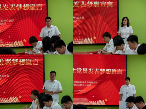 全体毕业生党员发表梦想宣言,逐一分享在学院的成长收获与对未来的期望。并在明信片上撰写“致未来的一封信”,投入“时空邮箱”封存留念。