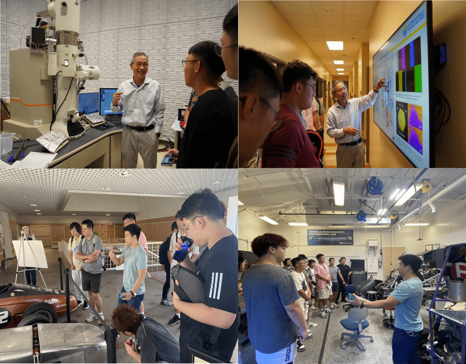 此外,学生还参观了加州大学欧文分校多个实验室,了解到前沿的研究成果,例如超级高铁、赛车、火箭研发、航模项目、世界顶级材料分析仪器等,获得了极具启发的科研体验。