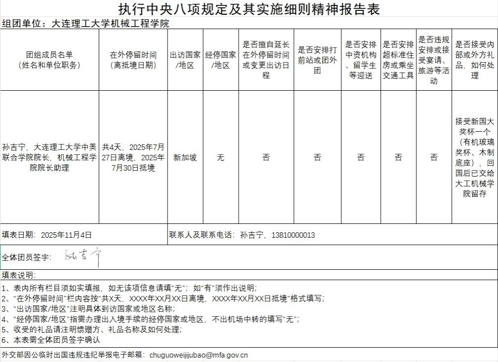 受新加坡国立大学邀请,大连理工大学机械工程学院孙吉宁教授于2025年7月27日至7月30日访问新加坡国立大学机械工程系,