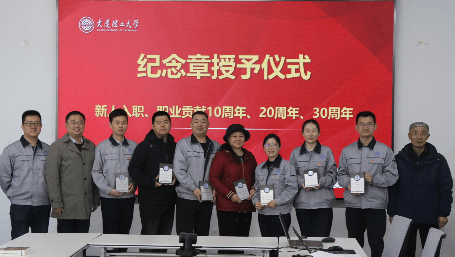 会议伊始,党支部首先进行了新员工入职欢迎仪式,中心国家级教学名师梁延德教授对新入职的范康南老师进行了介绍,并表示了热烈欢迎和殷切希望。随后,梁延德教授和马广义教授为来校工作整10周年、20周年、30周年的教职工颁发了“职业贡献纪念章”,肯定了他们长期以来为中心发展做出的努力和贡献。党支部书记戴明华表示,希望新入职的老师能够尽快融入集体,积极向党组织靠拢,为工程训练中心的发展贡献自己的力量;同时也希望获得纪念章的老师能够珍惜荣誉,再接再厉,继续为中心的发展增光添彩。