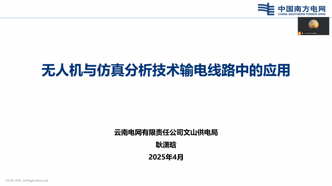 在活动中,云南电网有限责任公司文山供电局输电管理所第一党支部代表耿潇晗做了题为《无人机与仿真分析技术输电线路中的应用》的报告,介绍了无人机技术与有限元仿真技术在电网输电领域的应用场景,着重分享了基于RTK定位系统与可见光无人机的导线型号识别技术、基于流-固耦合仿真的四分裂导线微风振动频率计算等技术,并回答了学生的一系列提问,解答了关于机器人视觉在工程中的应用等方面的问题。