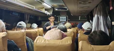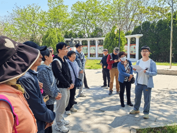 前往途中,队伍专程探访新时代“大国工程”——大连湾海底隧道。研究生李正、刘可为通过在车上现场讲解,介绍了我国海底隧道的建设情况:“建设者们首次采用了施工及数字化双产品交付,攻克了寒冷地区海工混凝土结构百年耐久性难题,发挥了党员的求真务实、努力进取的优良作风。大家纷纷感慨:“新时代科技腾飞,有效破解了大连C字形结构交通瓶颈,将繁华的中山区与发展潜力巨大的甘井子区越海相连,为大连发展插上了腾飞的翅膀。”