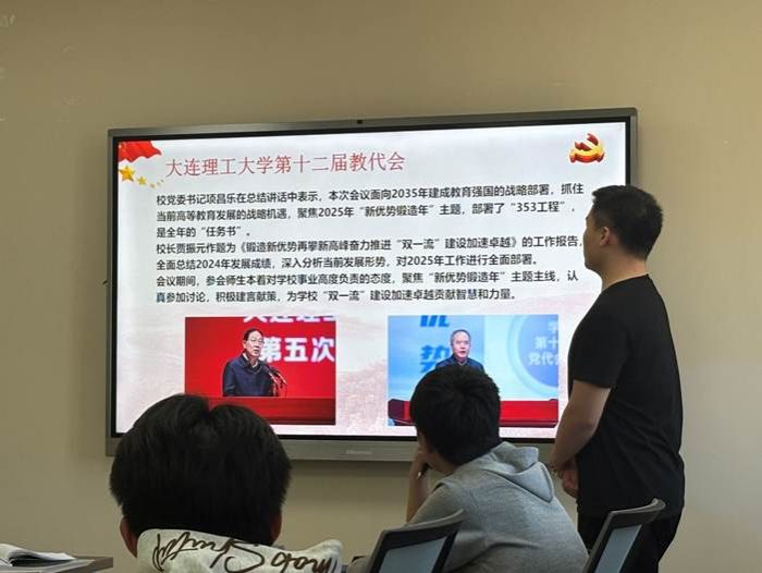 首先,党员深入学习了习近平总书记关于加强党的作风建设的重要论述和中央八项规定及其实施细则精神。随后,毕向宇同志领学2025年全国两会精神、习近平总书记在辽宁考察时的重要讲话精神以及大连理工大学第十二届教代会第五次会议暨2025年学校工作会议精神。同志们在学习的过程中积极思考和交流,纷纷表示此次学习受益良多。