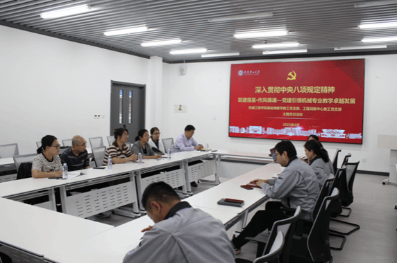 为贯彻落实学校“书院育人、学域培养”的创新人才培养新模式,积极探索面向不同学域学生的教育教学改革,2025年6月5日,机械工程学院工程训练中心教工党支部与基础课教学教工党支部携手开展了一场主题为“党建引领机械专业教学卓越发展”的主题党日活动,通过党建引领推动机械专业教育教学的高质量发展,并邀请机械工程学院副院长马广义教授莅临指导。