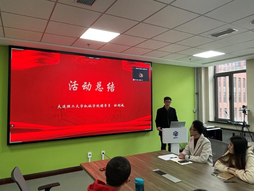 最后,大连理工大学机械工程学院辅导员杜剑威老师对本次联建活动进行了总结,对山东科技大学陆嗣同志和大连理工大学宋树乙同志的汇报表示了肯定,并对两校共建目标实现提出了要求,希望两校学生加强联建、加深合作,主动分享学习党的二十大精神高质量的方式方法,积极共享先进的科研理念和学术成果,期待两校学生的政治素养和科研能力在联建中得到进一步提高。