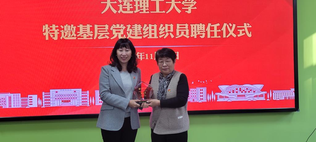 建筑与艺术学院党委书记常亮和外国语学院党委书记张丽分别为特邀党建组织员季亚男同志颁发聘书和水晶牌。