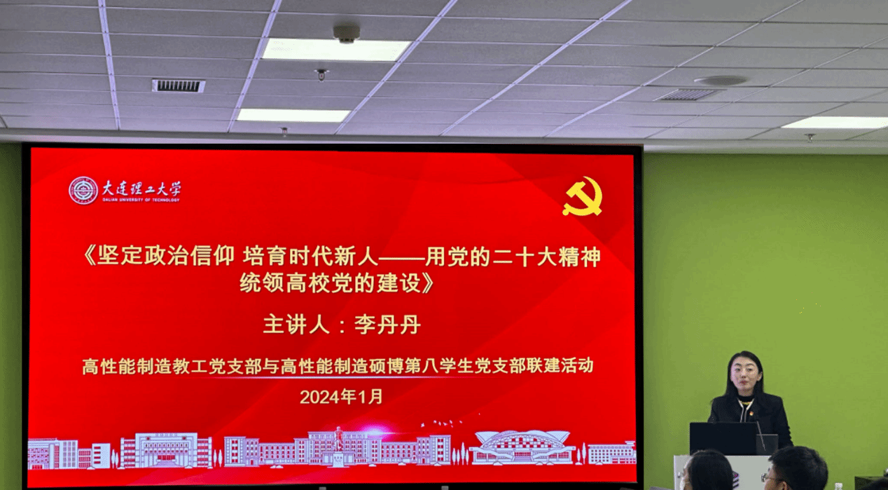 为全面贯彻落实党的二十大精神、坚定师生党员的政治信仰,1月11日下午,机械工程学院高性能制造教工党支部和高性能制造硕博第八学生党支部开展联学联建活动,邀请马克思主义学院李丹丹副教授讲授《坚定政治信仰、培育时代新人——用党的二十大精神统领高校党的建设》主题党课。联建活动由高性能制造教工党支部书记郭晓光教授主持。