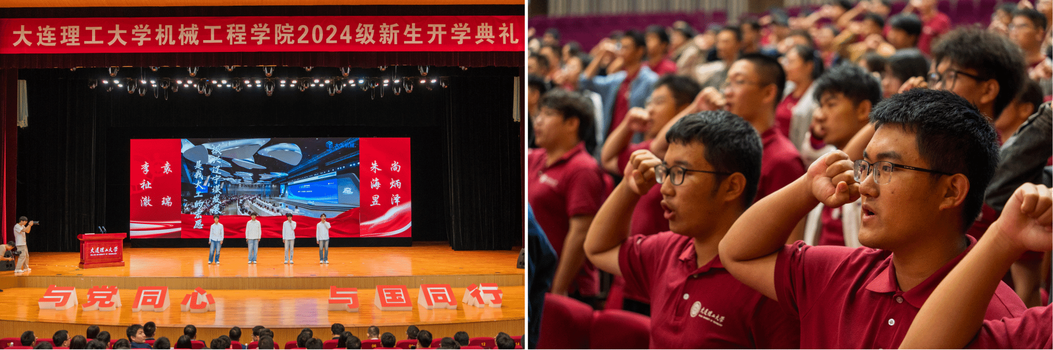 机械红,映大工。2024级全体新生在大工机械赴一场青春之约,愿同学们能够铭记“明德格物、博学笃行”院训,不负青春,学业有成,携赤诚理想,向卓越未来!