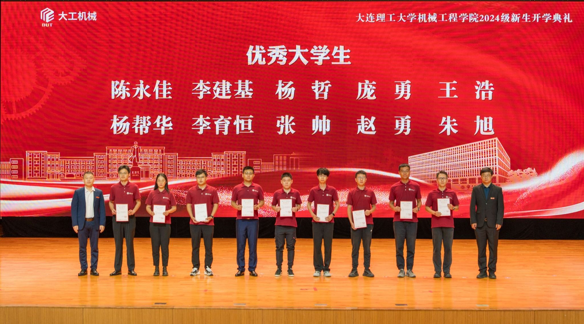 典礼上,与会领导及嘉宾为优秀大学生代表颁奖,希望广大学子能见贤思齐,也期待优秀的机械学子接续奋发,再创佳绩。