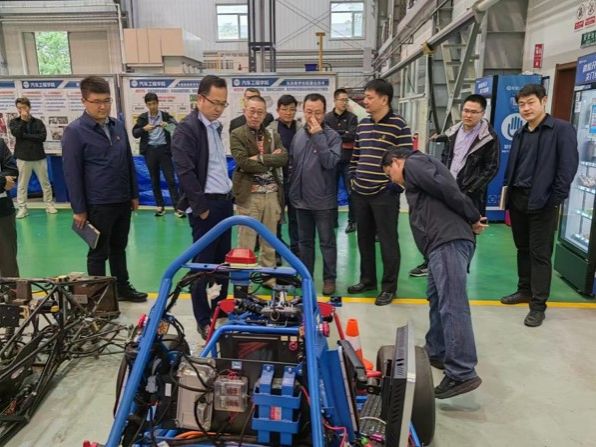 机械工程学院党委书记亓昌带领两个支部全体党员参观汽车实验室,展示了实验室的先进设备和研究成果,详细介绍了实验室在车辆先进设计与制造、新能源车辆及控制系统、智能网联汽车技术、新一代特种车辆技术等领域的研究工作和育人成果。