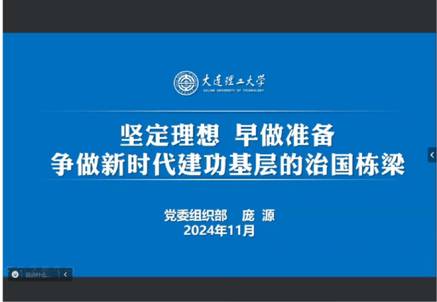 庞源围绕选调生的相关政策为学员们讲授《坚定理想早做准备争做新时代建功基层的治国栋梁》主题课程。他深入剖析了选调生的选拔标准和培养路径,为同学们规划未来发展提供重要参考,激发了同学们投身选调生队伍、为国建功的热情,争做“社会领导者”。