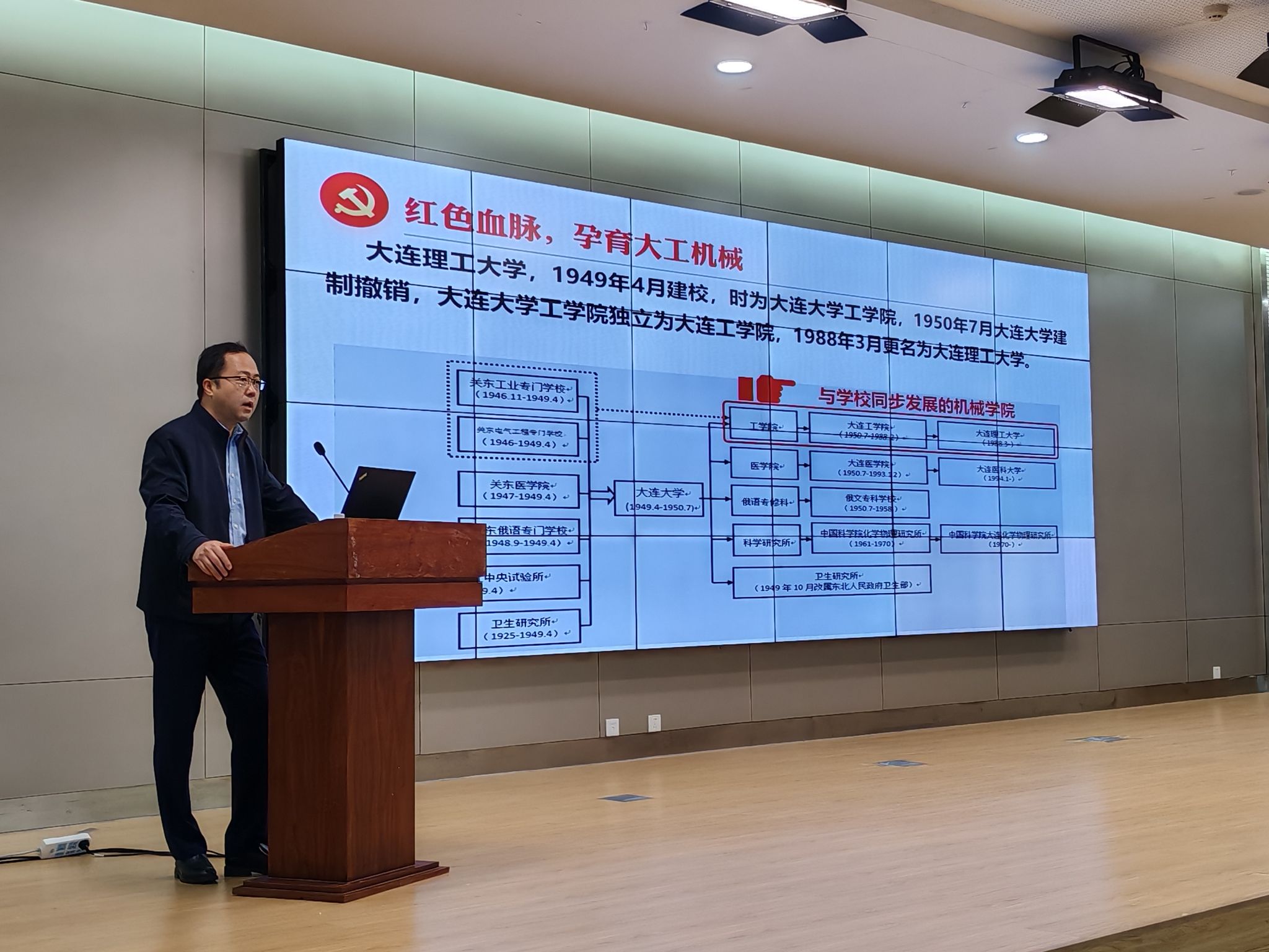 亓昌以《重温伟大初心使命传承机械红色基因》为题进行首场培训报告,讲授建系(学院前身)以来学院一批优秀教师教书育人的先进事迹和涌现出包括党和国家领导人、专家学者、企业家等一批优秀校友,带领同学们探寻机械工程学院75年来发展和建设的红色足迹,感受前辈们为国家建设和学校发展作出的卓越贡献,激励在场的每一位同学争做“学术引领者、社会领导者、行业领军者、工程领创者”。