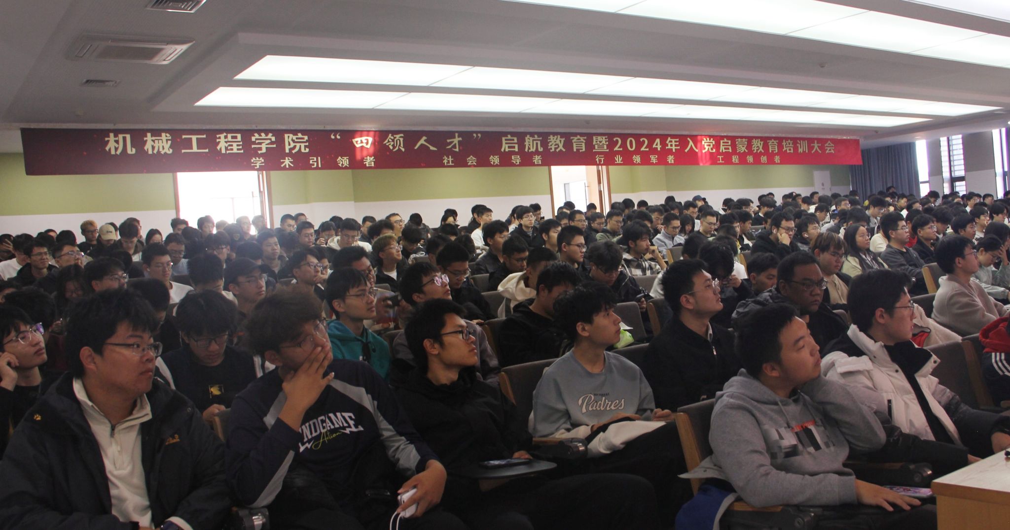 为帮助学院2024级新生深入感悟“机械工程”学科深厚历史底蕴,传承学院与校同行、与国同向的红色基因,学院党委组织开展“四领人才”启航教育暨2024年入党启蒙教育培训。机械工程学院党委书记亓昌、学校党委组织部副部长庞源、机械工程学院副院长马广义和学校党委组织部党员教育监督室主任公茂强分别授课,机械工程学院党委组织员姜雨杉就入党有关问题进行答疑。机械工程学院2024级全体研究生新生和中美联合学院2024级全体本科生新生参加培训。