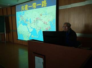 图1罗钧炎教授主讲《“一带一路”基本知识》主题讲座。