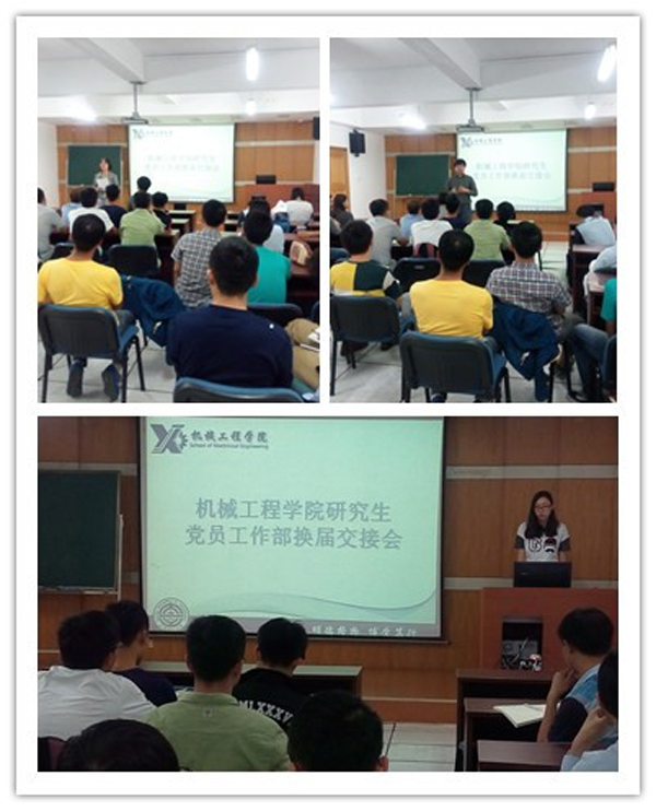 春耕夏耘,经风沐雨,当金风送爽的时候,机械工程学院研究生党员工作部也迎来了一批新的面孔。9月28日18时,机械工程学院研究生党员工作部在机械东楼207会议室召开换届交接会,完成第一届到第二届的交接工作。学院党委组织员庞丹、研究生助理张晓峰出席本次会议。