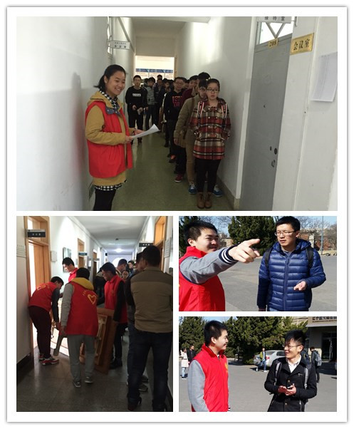 早在本月21日机械研究生会志愿者部就发出通知招募本次志愿活动的志愿者。通过指导教师和“DUT机械研究生“微信公众平台的宣传,此次活动共招募了近四十名机械研究生志愿者。根据往年考生和教师的情况反馈,结合今年的复试安排,此次活动的志愿者共分为4种类型,分别为指路志愿者、口语志愿者、面试志愿者和守夜志愿者。志愿者们通过4天的轮流值班,为考生们在复试过程中提供了极大的便利,其中工作最为辛苦的守夜志愿者需要在发榜当天值班到晚上十一点。机械工程学院的研究生志愿者们活力十足、尽职尽责,为展现我校风采,体现机械学院人文关怀做出了贡献。
