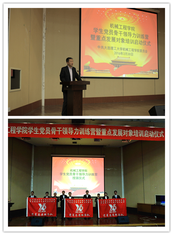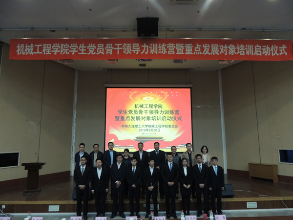 机械工程学院党委将提升领导智慧,打造精英人才作为提升党员骨干领导力的主要内容。经过近一个学期的策划,由机械工程学院党委主办、学院研究生党员工作部承办的首届学生党员骨干领导力训练营正式启动,并于3月30日晚在研教楼报告厅举行开了启动仪式。校党委宣传部常务副部长兼新闻中心主任周福战、机械工程学院党委书记康旭东、学院党委副书记兼副院长于盛军、边悦玲、学院学生工作办公室主任王雷、学院研究生工作助理张晓峰、学院团委书记赵玉鹏应邀出席了本次启动仪式,仪式由学院党委组织员庞丹主持。