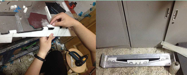 大连理工大学机械工程学院代表队由以杨仁同学为首五名本科生组成。他们分别来机械工程学院和运载工程与力学学部,分别负责机翼制造工艺和设计。他们在课余时间学习复合材料加工技术,在为期一个多月的比赛过程中,克服了一系列困难最终成功完成作品。在整前期比赛和准备工作过程中,五位同学得到了机械工程学院杨睿、孙士勇老师的指导和资金上的支持,以及运载工程与力学学部刘新老师的帮助。