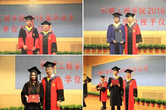 典礼上,学位委员会四位导师为毕业生拨动流苏,授予学位。各位导师祝贺毕业生们顺利毕业、亲切询问毕业生们毕业去向,还叮嘱毕业生,要坚持梦想,做贡献祖国发展的生力军。
