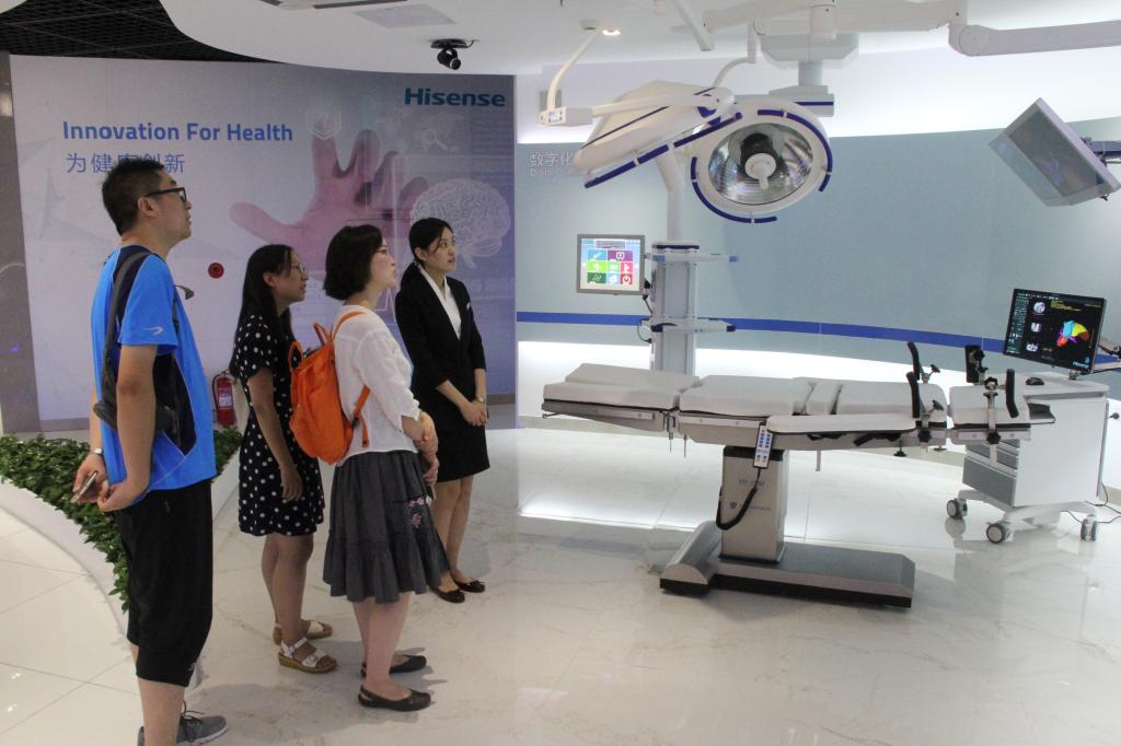 8月2日,海信大工校友带领实践团一行人参观了海信大厦。在讲解员的引导下,实践团一行人了解了海信的发展历史、现状及前景,海信集团除发展白电设备外,还涉足交通、医疗等多领域,其发展前景不容小觑。