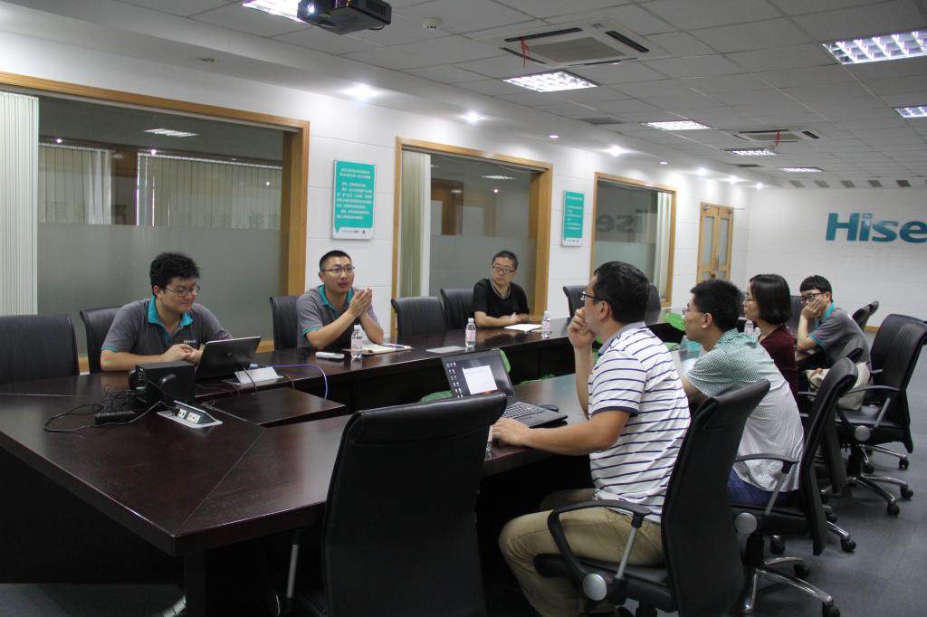 8月1日上午9:00,机械工程学院青年教师社会实践团一行人来到青岛海信空调有限公司,受到了公司徐涛部长的热情接待。首先,海信空调的领导和实践团一行进行了座谈,现为海信员工的大工机械工程学院校友陈守海也参与了此次座谈。徐涛部长向大工老师介绍了海信集团和海信空调情况,大工机械的刘新老师也将大连理工大学、机械工程学院和协同创新中心的情况进行了讲解。在随后的交流中,双方就大连理工大学毕业生情况和毕业生就业情况进行了深入交流。