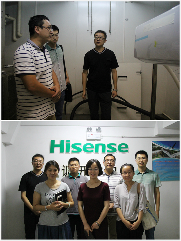 上午10:00,在生产部黄术良主任带领下,实践团一行人参观了海信空调展厅和实验室,了解了海信空调现今发展情况和满足不同需求的主要空调产品。随后,实践团一行人又参观了空调生产车间,并与徐涛部长和黄术良主任合影留念。
