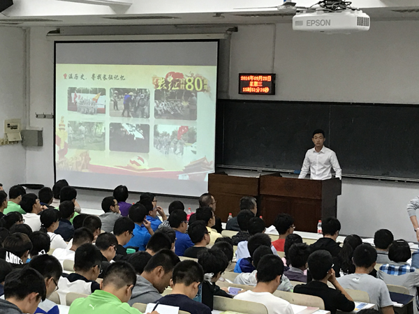 红军长征是载入人类史册的一座丰碑,是中国共产党及其领导的红军用灵与肉、血与火谱写并贡献给世人的雄壮史诗。今年适逢纪念红军长征胜利80周年,机械学院党委在七一前夕举办了“重走长征路”大型主题党建活动,学院师生党员校内模拟重走长征路与奔赴瑞金、井冈山、会宁、延安等地实践团队“隔空对话”,致敬党的生日,纪念红军长征,传承“红色基因”。实践团学生从井冈山、瑞金、遵义、会宁、延安等拥有红的记忆的革命胜地讲起,将这次实践的所见所学所感,分享给机械2016级新同学们。希望新同学们能够铭记中国的困难岁月,传承大工的红色基因,把实现中华民族伟大复兴,实现中国梦作为己任,不忘初心,继续前行。