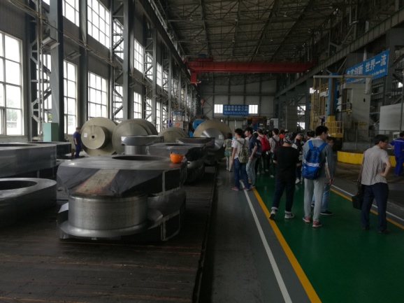 在大连华锐重工集团股份有限公司泉水基地和旅顺基地,学生们参观学习了装卸机械制造事业部、起重机公司和曲轴公司。在亲眼看到1900吨级和20000吨级的大型起重设备时,学生们也由衷的赞叹科研人员的智慧,尤其是了解到只有我国和韩国才能生产某大型船用柴油机主轴产品时,学生们爆发出热烈的掌声。