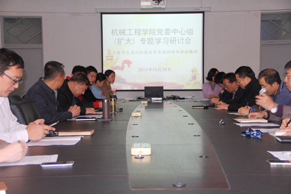 10月28日9:00,机械工程学院党委在集体观看习近平总书记纪念红军长征胜利80周年大会直播后,第一时间组织召开学院党委中心组(扩大)专题研讨会,集中学习宣传贯彻习近平总书记在纪念红军长征胜利80周年大会上的讲话。学院党委中心组成员、全体师生党支部书记、辅导员老师50余人,在机械东楼209会议室集中学习。学院党委书记康旭东出席并主持会议。
