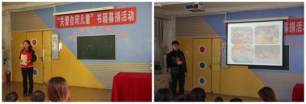 机械工程学院现代制造硕博第二学生党支部书记刘翰超介绍了自闭症儿童相关情况,说明此次捐书活动对自闭症儿童的重大意义,凸显了关爱自闭症儿童、图书捐赠的必要性和迫切性,希望通过此次活动让更多人了解自闭症,汇聚社会力量,关爱自闭儿童。