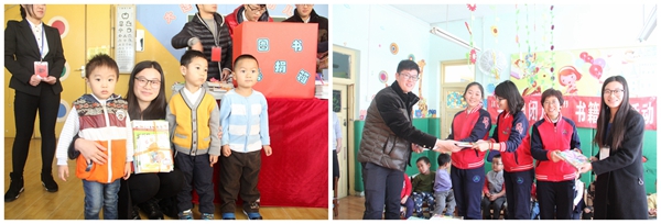 9点30分,捐书活动正式开始,机械工程学院现代制造硕博第二学生党支部、国际处机关党支部、船舶学院第一党支部和幼儿园党支部分别由代表上台捐赠本支部募集的儿童书籍,之后幼儿园老师和小朋友依次上台捐赠书籍,寄语自闭症儿童,鼓励他们积极向上,祝愿他们早日康复,万卷康复中心负责人依次与小朋友合影留念,并在此对他们的善举表示衷心感谢。