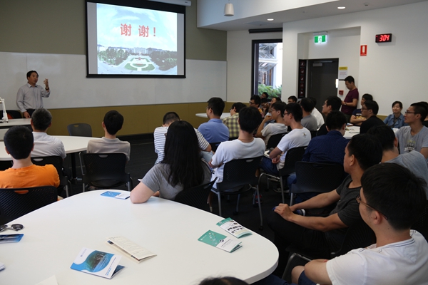 同日下午,贾振元一行与昆士兰大学中国留学博士生50多名代表进行了座谈。贾振元教授详细介绍了我校在一流学科、人才队伍、国际合作等方面情况,并就学校高端人才引进相关政策进行解读。宣讲得到了参会留学博士生的热烈反响,对大连理工大学人才引进政策表现浓厚兴趣,现场提问踊跃,当日即有多名留学博士留下联系方式并上传个人简历。