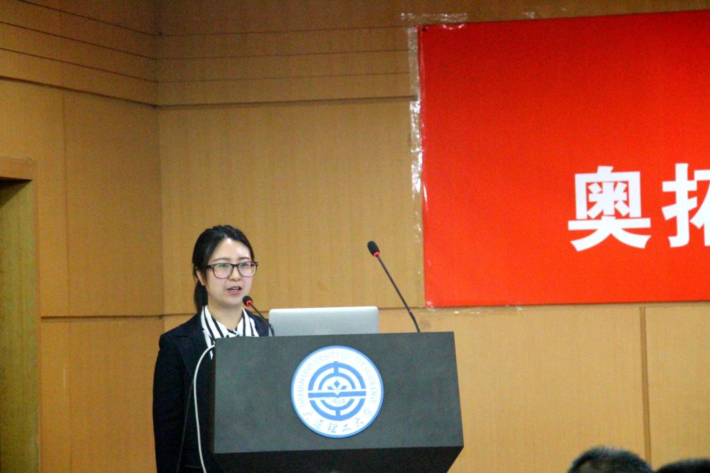 机械工程学院2015级硕士研究生张嘉桐同学作为获奖代表发言,汇报了自己在研究生学习阶段取得的优异的学习与科研成绩,并表示定当以获得奖学金为动力,戒骄戒躁,心怀感恩,继续前行。