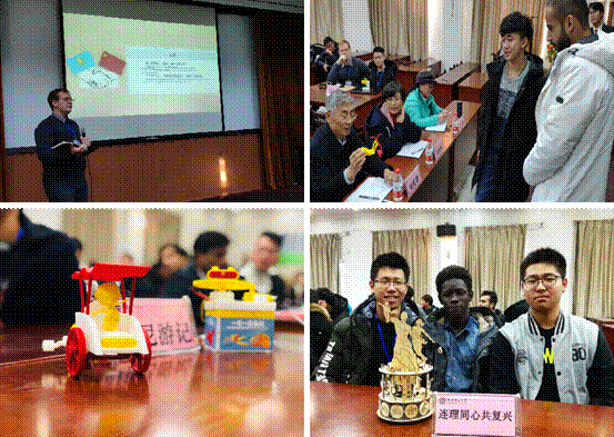 本次竞赛为期2周,每个团队均是由外国留学生与机械工程学院本科生组成,各团队成员需在规定时间内完成讨论、构思、建模、3D打印/激光加工、作品装配、作品调试等环节,最终设计制作出具有国家文化特色的作品。在设计讨论过程中,各组同学需克服语言障碍,来自不同国家的他们只能使用英语来进行交流沟通,表达各自的想法,使各自的文化可以与作品完美结合从而设计出优秀的科技作品,取得比赛的胜利。