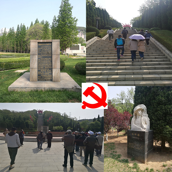 支部青年党员们拾级而上登高望远,缅怀先辈们的英雄气概,珍惜新时代下人民的美好生活来之不易。尔后和老党员同志汇合,参观公园的祭祀瞻仰区的英雄事迹展览和烈士墓地。整个祭祀瞻仰区被绿地、翠柏交相掩映着,宛如一幅生动的历史画卷展现在我们面前,是我们悼念英雄烈士、加强爱国主义和国防教育的生动课堂。同志们先后参观了李大钊、林祥谦、蔡和森、邓中夏等革命先驱的石雕、铜塑和中国人民革命史浮雕墙,从展览中,大家切实体会到了中国人民不屈不挠、前赴后继争取革命胜利与和平解放的斗志与决心。