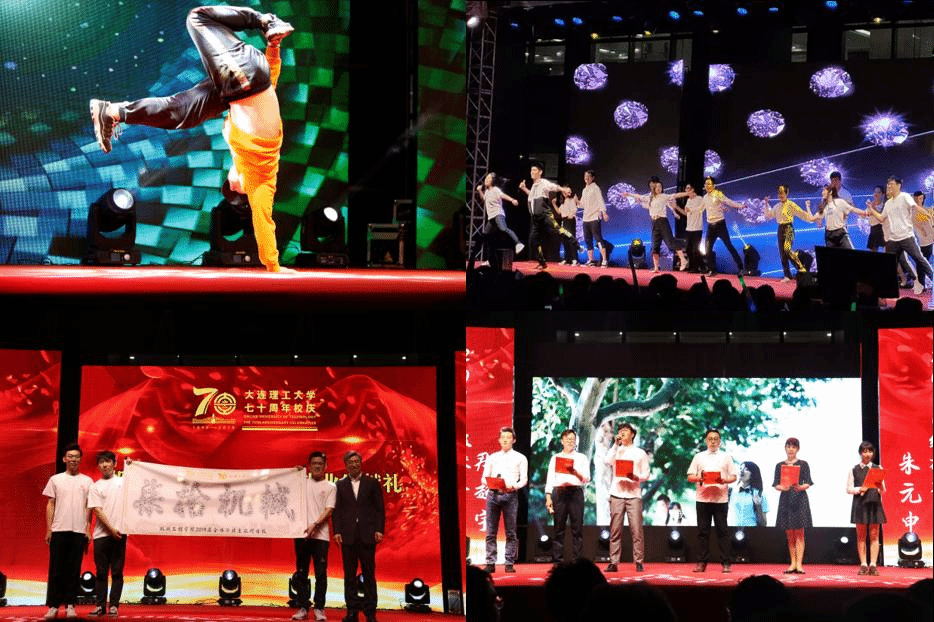 70年艰苦创业,从无到有,大工机械始终栉风沐雨、砥砺前行。整场晚会分为“梦想·源”“爱校·情”“报国·志”三个篇章,舞蹈《初心》带领观众们重温建校初心,也警醒着当代大学生要不忘初心、牢记使命。机械系第一届毕业生卢杰持等6位校友及教师、学生代表表演的音诗画节目《辉煌机械70年》,讲述了机械学院七十载的光辉历程,辉煌机械70年,我们始终与党和国家同心同向;我们始终与大工同力同轨;我们始终与时代同频同行。由6位学院教师代表表演的舞蹈《爱我中华》赞颂着祖国的大好河山。合唱《彩虹》唱出大工人、机械人要坚持发扬艰苦奋斗的精神。