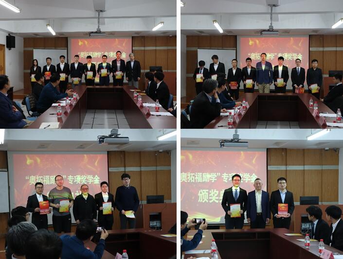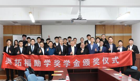 机械工程学院李经民副院长宣读了2019年奥拓福励学奖学金获得研究生名单,奥拓福科技股份有限公司领导与机械工程学院领导共同为获奖同学颁奖,袁业民同学代表获奖同学发言。