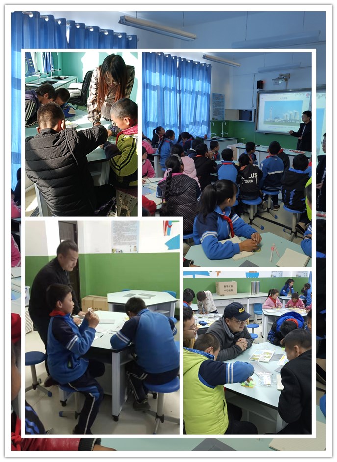 座谈后支教团在学校老师的协助下有序开展了内容丰富的支教活动,课程主要有航天知识、机器人、智能小车、科学小实验、科学小制作、地理知识、垃圾分类、军事等,支教团成员每人都有专门负责的课程,在支教前也做了大量的准备工作,在给孩子们上课时也非常认真,努力激发孩子们对于科学的兴趣,学生们参与度和积极性都很高,对科学知识都很向往,动手能力也有了较大的提升。动完毕后,校方老师带领我们参观了新学校的教学楼、宿舍楼、食堂以及新操场。