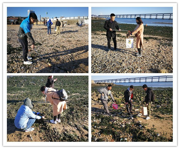 活动当天温度较低,海风较大,但是丝毫没有影响同学们积极参与的热情。在认真听完“我爱大连志愿者群”负责人的讲解以后,同学们领取了垃圾夹子,拿出环保纸袋,开始了一小时的志愿清洁活动。36名学生两人一组,在百余米的海岸线上认真细致地清理垃圾,大到矿泉水瓶,小到一片纸屑,都逃不过学生们的眼睛。同学们在清理垃圾的过程中,发现了很多自己平时没有注意到的景色,大家深刻认识到大连作为一个以海滨城市闻名的度假圣地,海洋环境保护的重要性无可比拟。