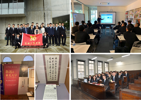 访学团首先来到的就是东北大学。东北大学是日本顶尖的帝国大学之一,已入选日本“超级国际化大学计划。访学团的同学们在东北大学听取了岡部朋勇教授关于“航空機用先進複合材におけるマルチスケールモデリング”的报告以及森古祐一教授的电气电子回路模拟课程。同学们在日本学生的带领下参观了机械智能航空工学科的多个研究室,使同学们在设计原理、设计理念及实际应用等方面全方位了解科研项目,激发了同学们的专业敏感度以及科研欲望。走完研究室同学们表示:“仪器普遍的纳米级精度以及其研究项目的先进性实在是令人叹为观止。”第二日下午,在工作人员的带领下,参观了东北大学校史馆以及鲁迅先生曾经上课的教室,充分了解其发展历史以及中国和其紧密连结的历史渊源。