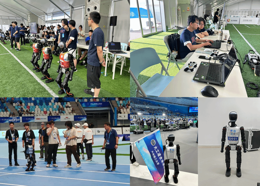 8月14日—17日,全球第一届世界人形机器人运动会在北京国家速滑馆“冰丝带”举行,我校首支人形机器人队伍—“大工凌水未来队”报名参加了3V3足球赛和100m比赛,并受邀参加运动会开幕式。大工凌水未来队队长为23级智能车辆工程专业宁子涵,领队由学院副院长马广义教授担任。队伍所训练的人形机器人在参加的3V3足球赛中,顺利进入全国8强,取得了全国第5的成绩;在参加的100m比赛中以预赛小组第二的成绩顺利完赛。