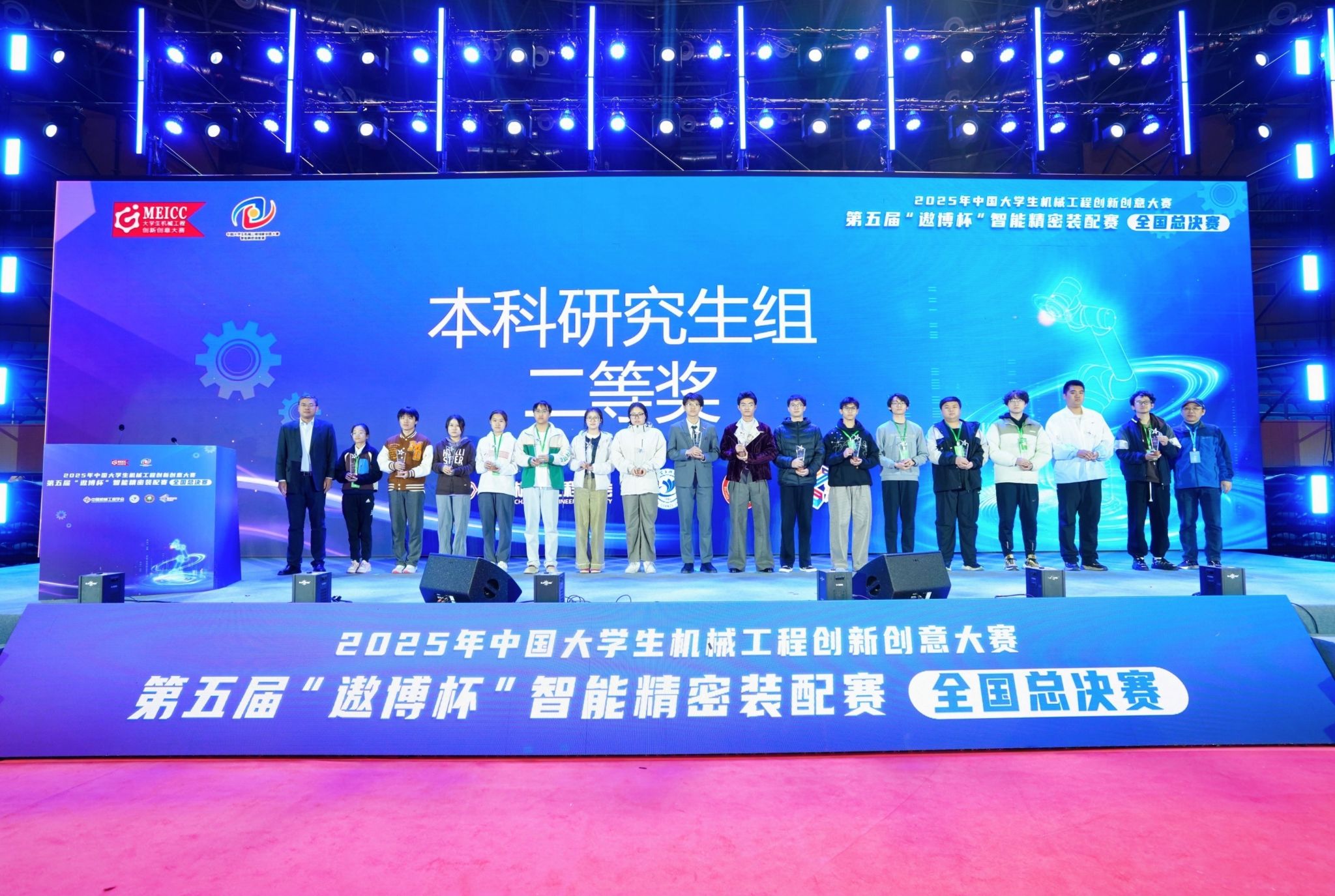 2025年11月21-22日,中国大学生机械工程创新创意大赛——第五届“遨博杯”智能精密装配赛全国总决赛在杭州举行。我校参赛学子共获得一等奖1项、二等奖3项,创造我校在本赛事参赛史上最佳战绩。