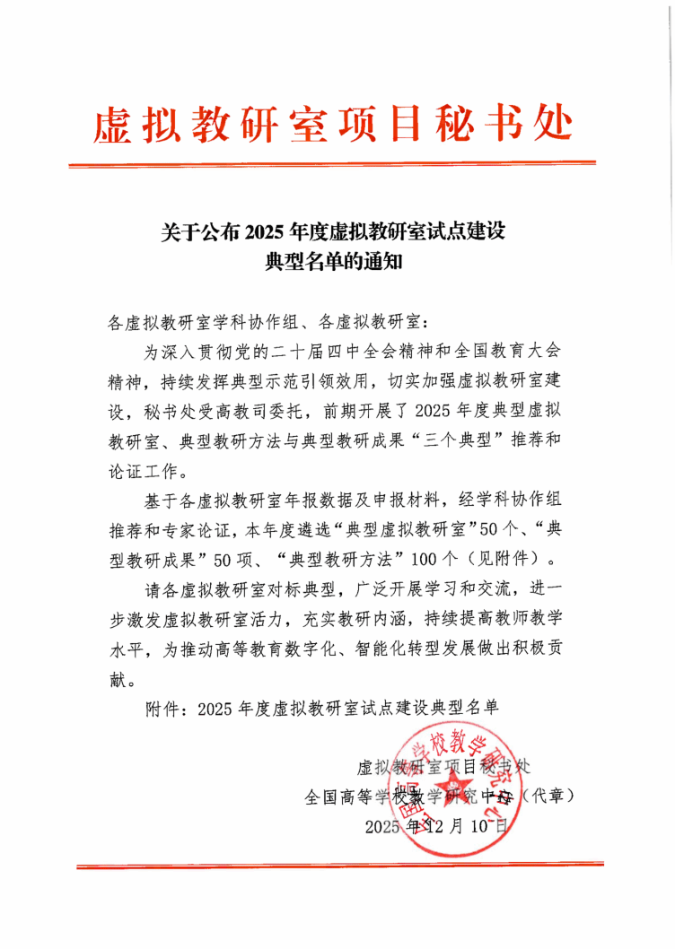 学院将以此次入选为契机,持续加强虚拟教研室建设,积极推广先进教研方法,促进教学资源的共享与创新,不断提升工程人才培养质量,为推动高等教育数字化转型贡献更多力量。