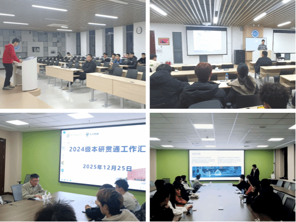 为持续推动本研贯通计划高质量实施,深化“教育-科技-人才”三位一体融合培养理念,机械工程学院于12月25日晚同步组织开展2023级和2024级本研贯通学生工作汇报。两场汇报分场地同时进行,分别由赵丹雷副教授和蔡磊助理教授主持,旨在检视学生近期科研进展,加强过程指导,助力学生明确下一阶段研究方向。
