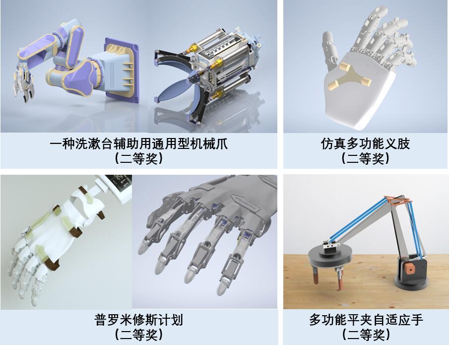 本届大赛的主题为“抓取稳准手到擒拿”,内容包括“生产线用零部件抓取机器手爪;办公、家庭及货架存放类物品抓取机器手爪;义肢(拟人手机器手爪);柔性机器手爪、登月营地物品抓取机器手爪”。我校的校内选拔赛于去年10月开始筹备,由机械工程学院宋洪侠教授全程组织指导,依托DUT学生设计俱乐部开展赛事相关培训辅导工作。由于疫情影响,上半年度学生居家学习,从方案设计、资料查阅、软件熟悉使用,到最终完善,参赛的师生们均克服了重重困难,按时向组委会提交了高质量的参赛作品。在本届大赛的决赛线上答辩展示环节,队员们对作品进行了精彩的展示与讲解。最终,我校餐厅(家庭)送餐机器人机器手抓团队、Unlimited changes机械手团队、胡来的左手团队获得一等奖;一种洗漱台辅助用通用型机械爪团队、多功能平夹自适应手团队、普罗米修斯计划团队、仿真多功能义肢团队获得二等奖。