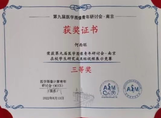 博士研究生何西旺(导师:宋学官教授)在MICS 2022研讨会上汇报了医工结合的“人体腰椎的数字孪生范例”研究,并获得了会议的“短视频展示竞赛三等奖”。