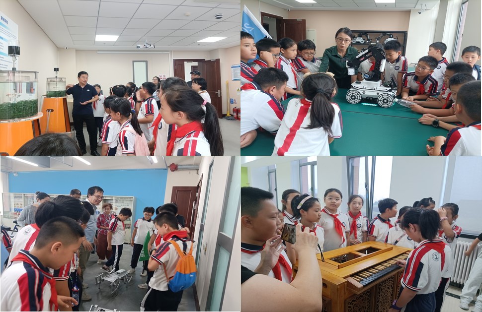 随后,在中心教师引导下,“英雄中队”一行分别参观了流体力学与液压传动、PLC和工业机器人、机构设计、科创竞赛等四个实验室模块,了解了流体力学和液压传动的科学原理,实操了PLC自动化控制系统,观看了工业机器人搬运及加工工件的工艺流程,学习了中心自制的面向机构综合创新的四足机器人构型设计,交流了机器人及人工智能有关的设备在教学和科创竞赛上的使用情况。值得一提的是,同学们还使用中心师生自主研发的首架国产管风琴现场尝试弹奏乐曲,深度领会了工程实践与精致乐理的融合之美。