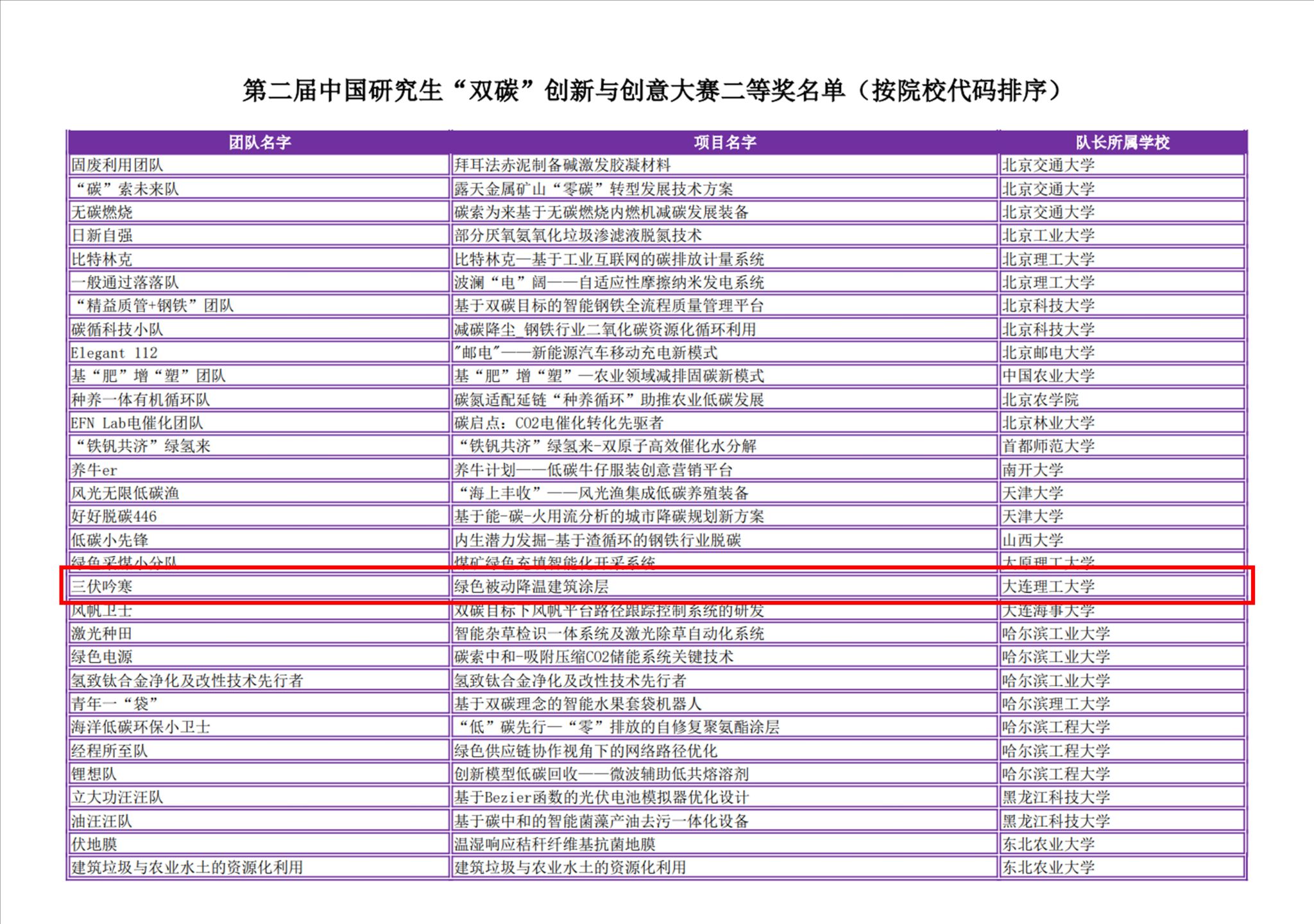 第二届中国研究生“双碳”创新与创意大赛获奖名单(部分,按院校代码排序)